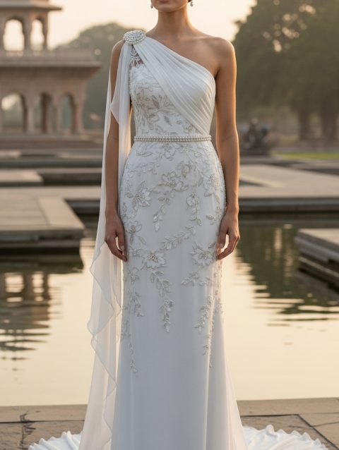Modern Minimalist Satin Wedding Gown